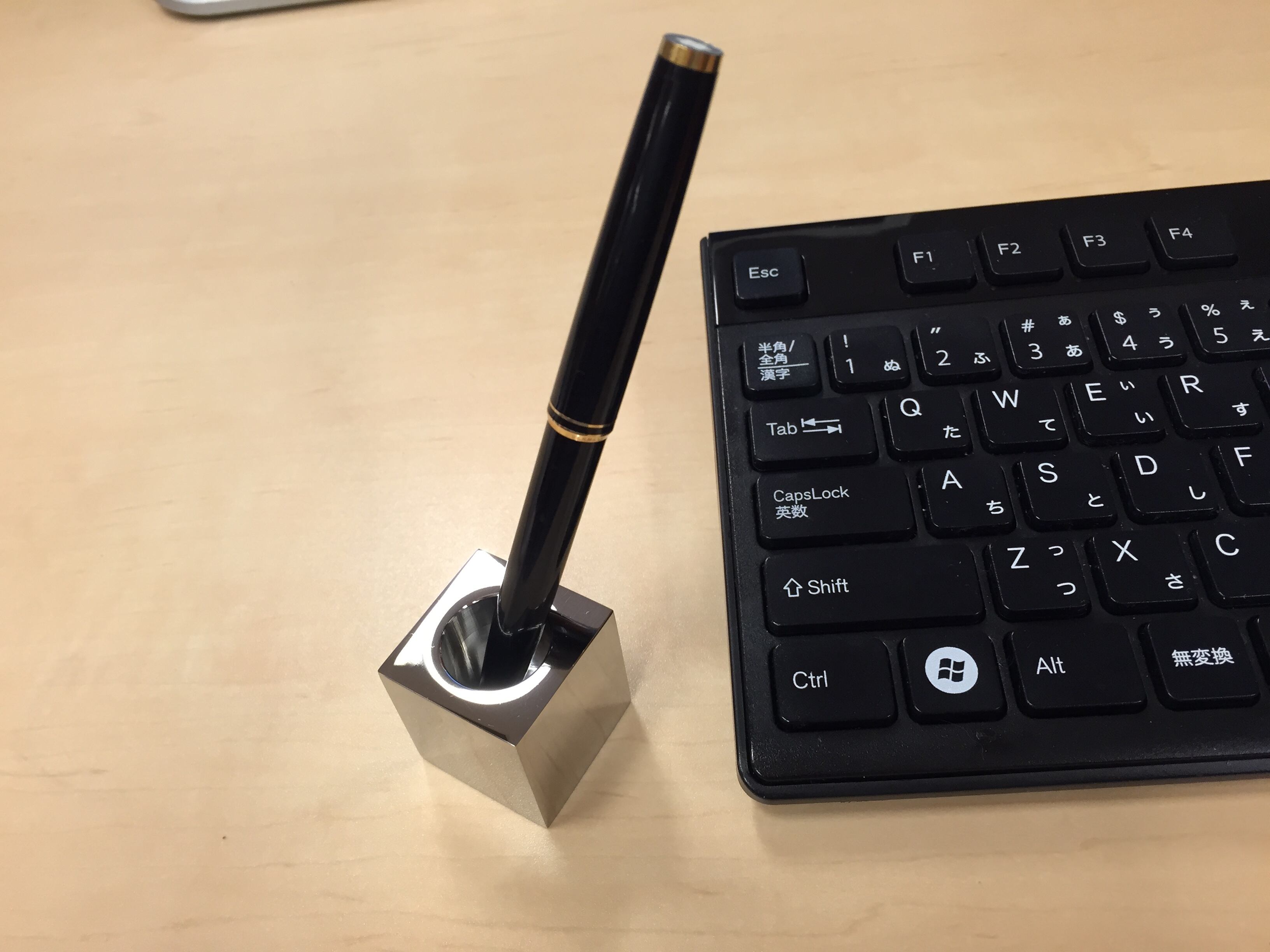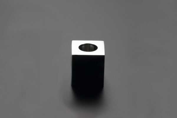 ステンレスインゴット(かたまり)から削り出した小さなキューブ型のペーパーウエイト。
